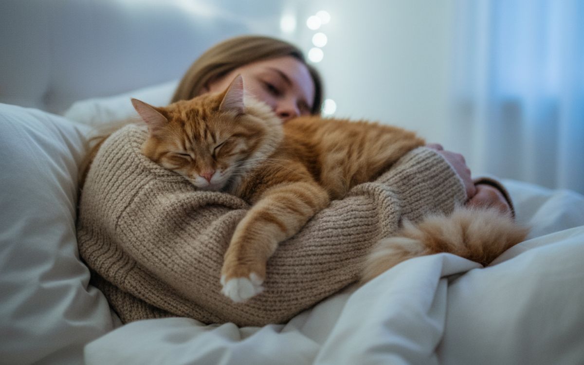 It means your cat trusts you deeply, feels safe with you, and enjoys warmth, comfort, and closeness.